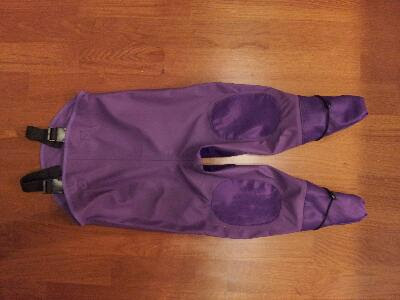 Jeg dro på stoff og stil og kjøpte regntøystoff, bevernylon til forsterkning, sømtape og stropper. mønsteret laget jeg utifra den vanlihe regnbuksen og parkdressen hun har nå. Det gjenstår å finne en løsning på beina, men til det må jeg prøve den på først.